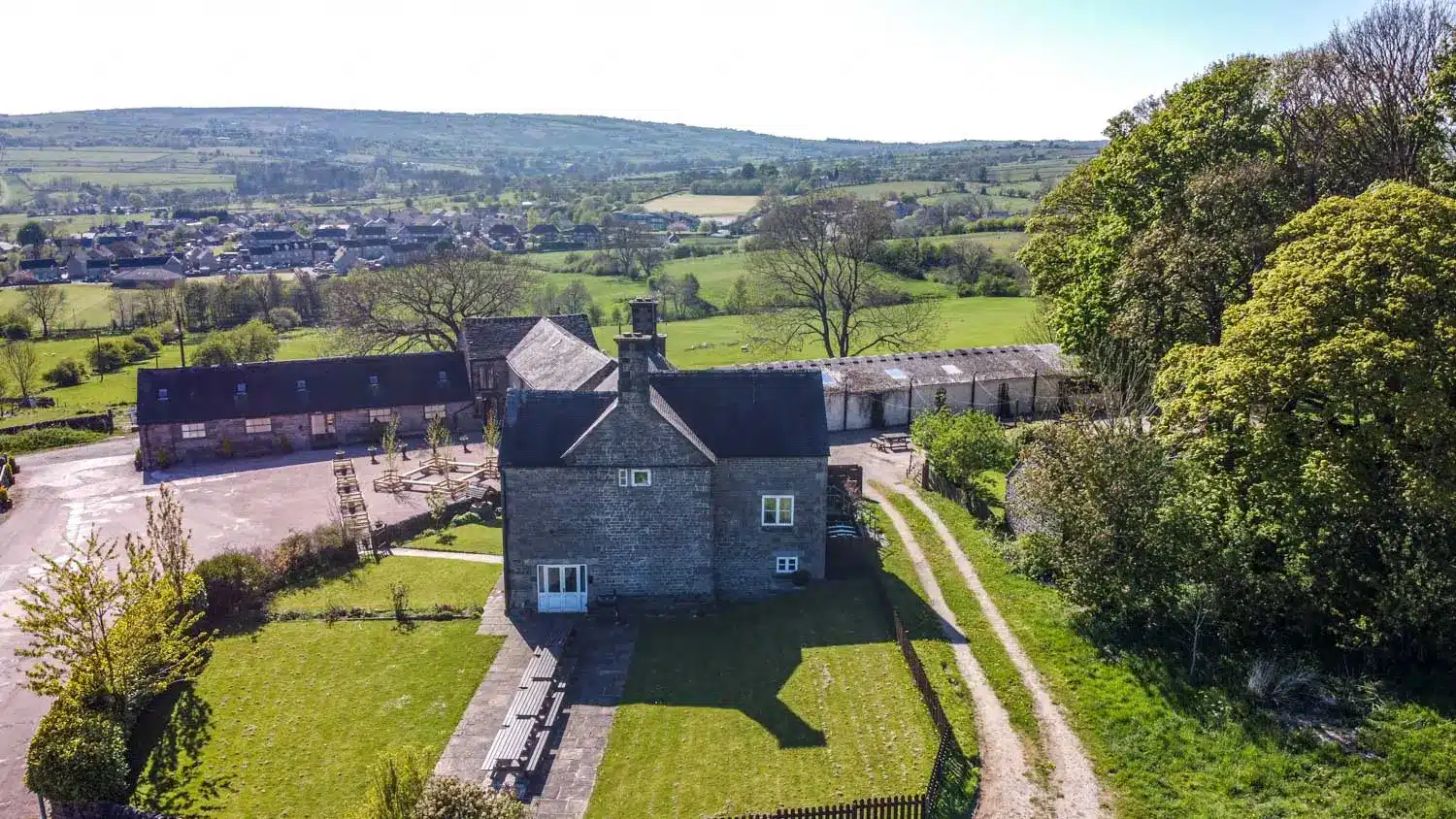 Two stylish barns on a scenic Peak District estate, each with private gardens, modern kitchens, and a shared hot tub—perfect for group getaways and countryside views.