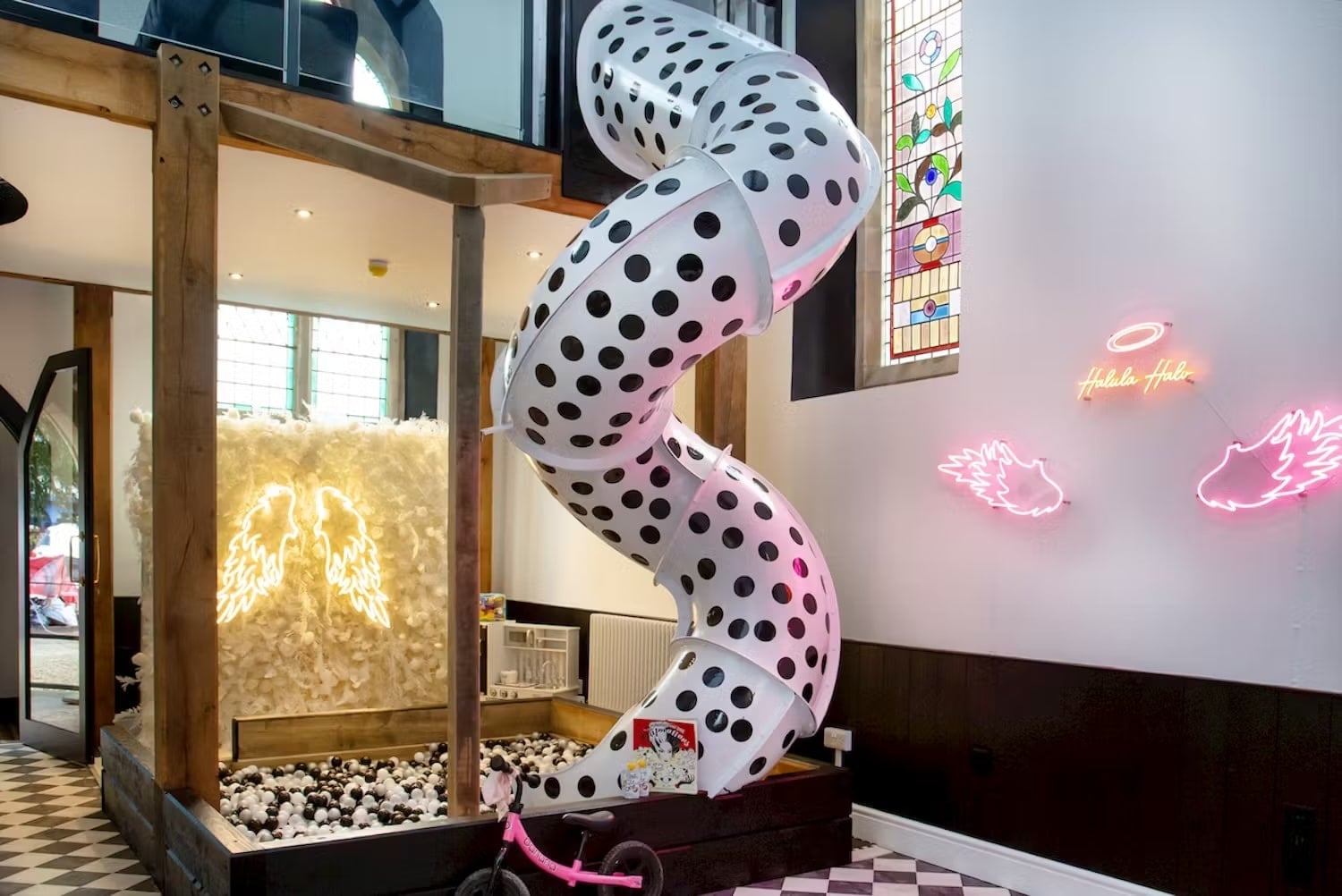 This vibrant, quirky group accommodation is perfect for all ages. With a pool house, indoor slide, hot tub, themed rooms, and a children's play area, it's ideal for unforgettable family fun!