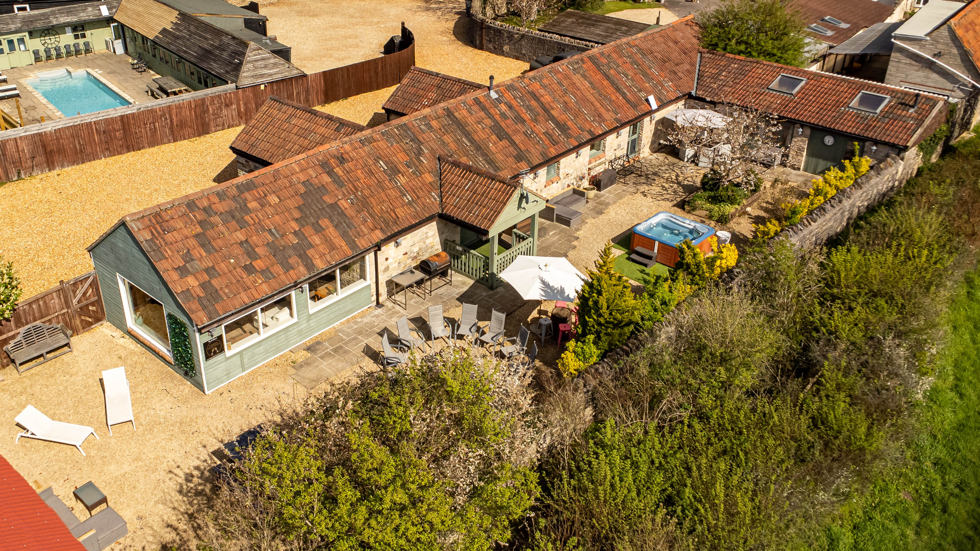 A detached stone barn providing extra guest space or a quiet retreat from the main house, perfect for those wanting some calm without missing out on the fun.